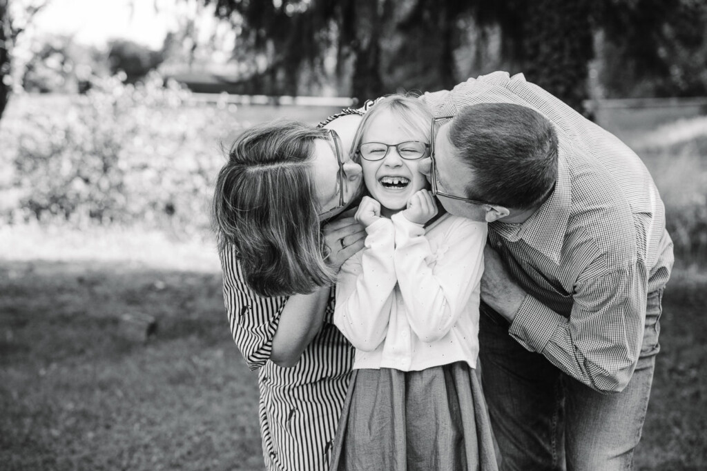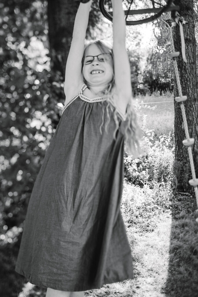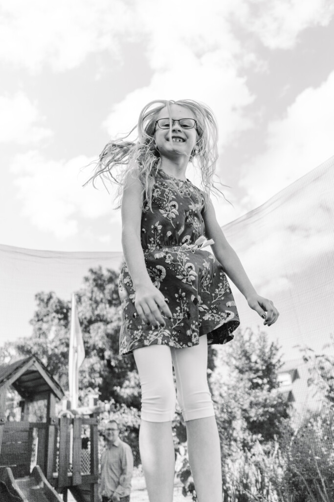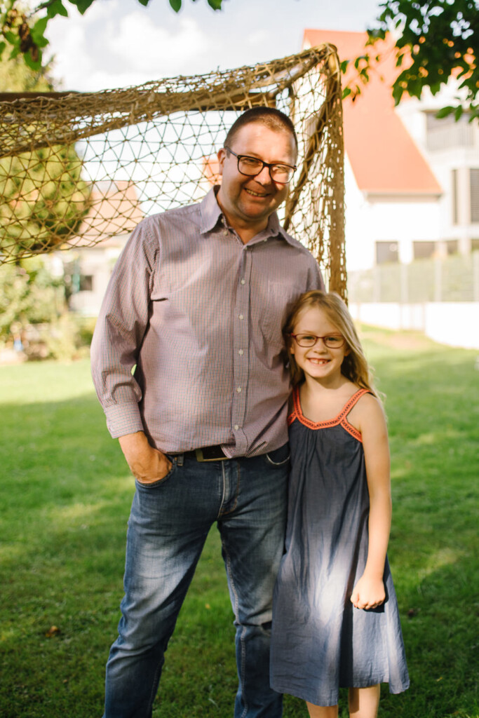 Eine Möglichkeit für tolle Familienfotos ist euer eigener Garten! Dort kenne sich eure Kinder aus und können sich deswegen viel besser entspannen.