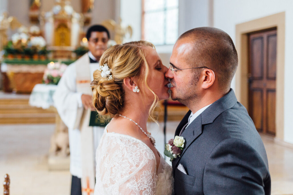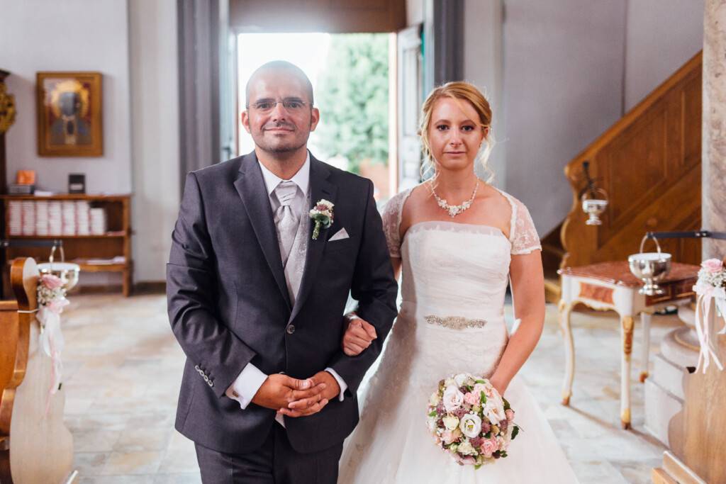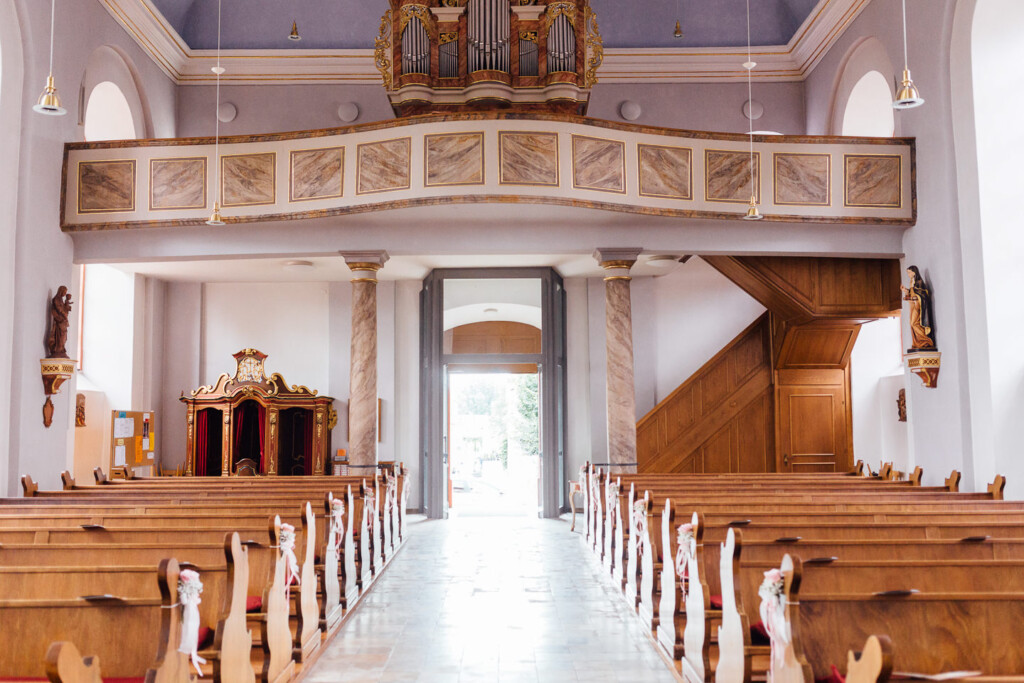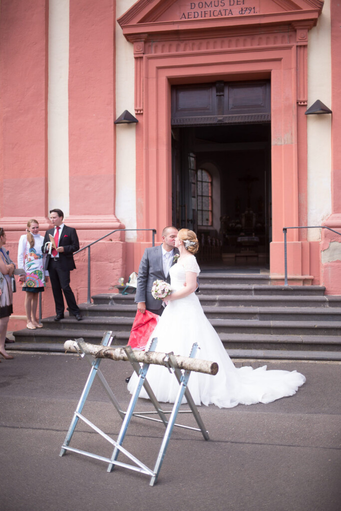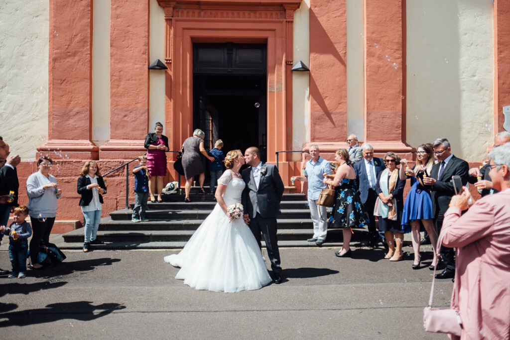 Nach Hochzeitsportraits im Schlosspark Bad Kreuznach ging es zur kirchlichen Trauung nach Bretzenheim. Dort erwartete das Paar einen wunderschöne Hochzeitsmesse mit einigen Überraschungen nach dem Ende der Messe.