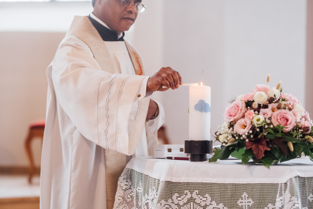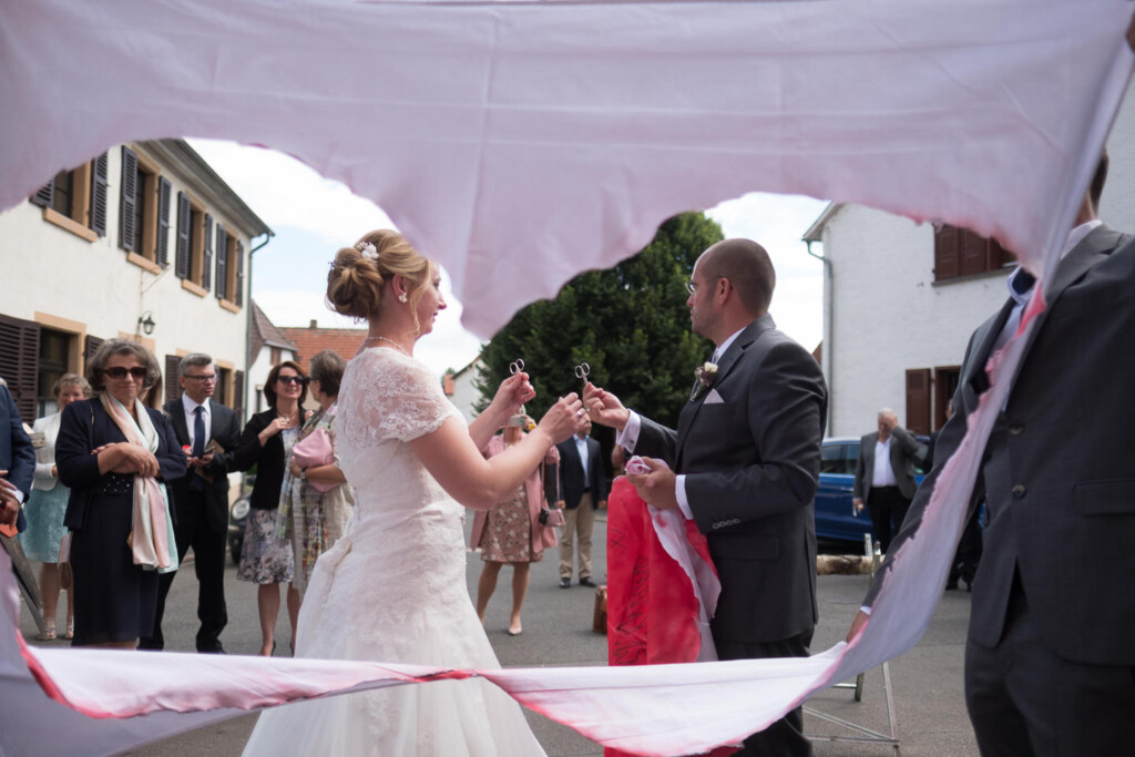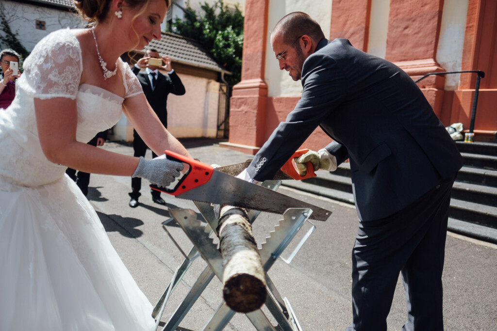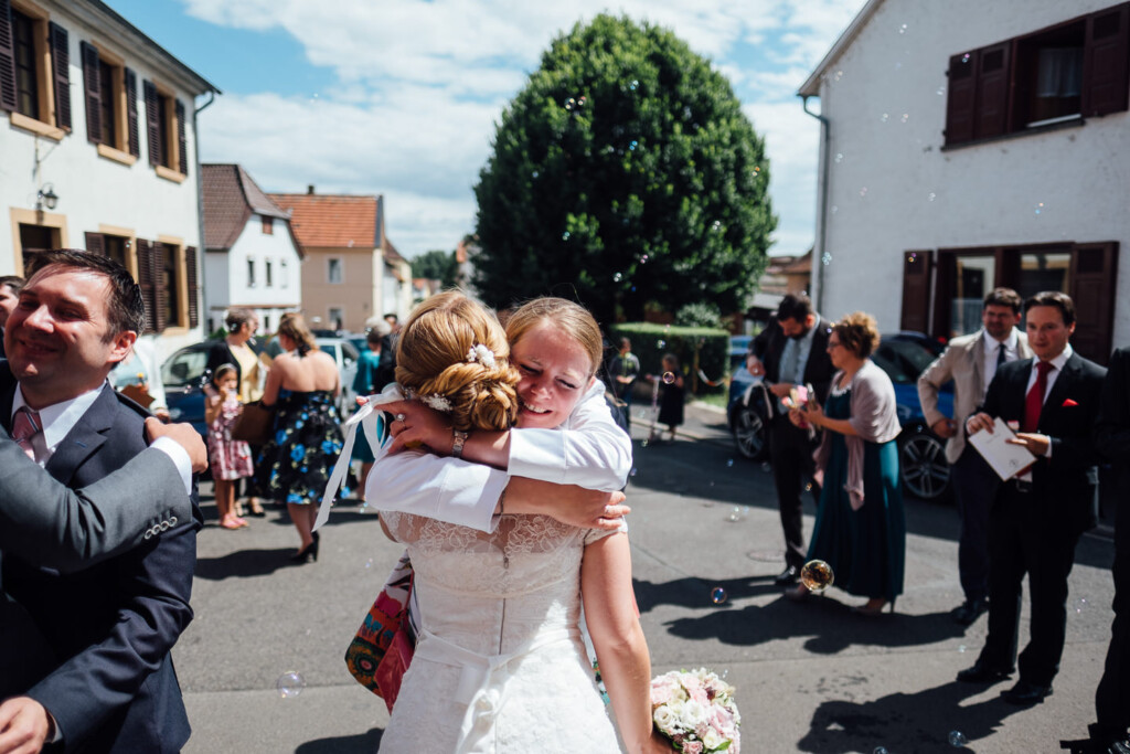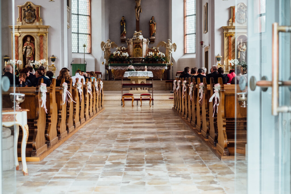 Nach Hochzeitsportraits im Schlosspark Bad Kreuznach ging es zur kirchlichen Trauung nach Bretzenheim. Dort erwartete das Paar einen wunderschöne Hochzeitsmesse mit einigen Überraschungen nach dem Ende der Messe.