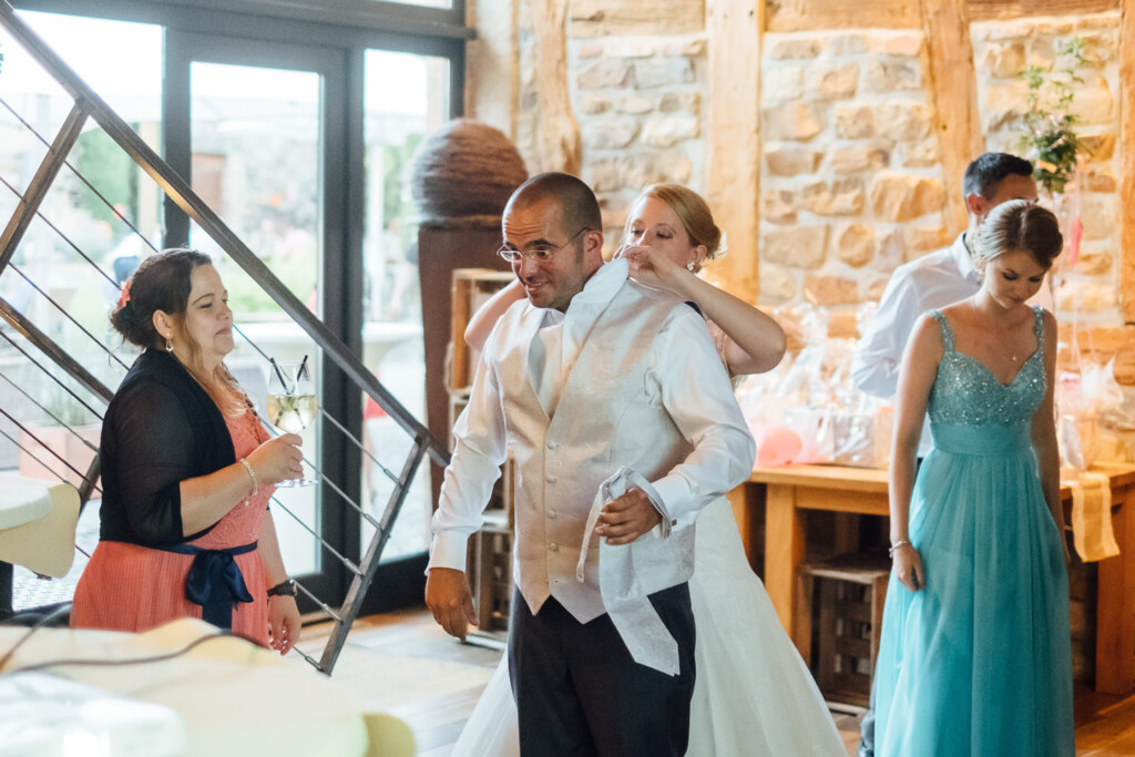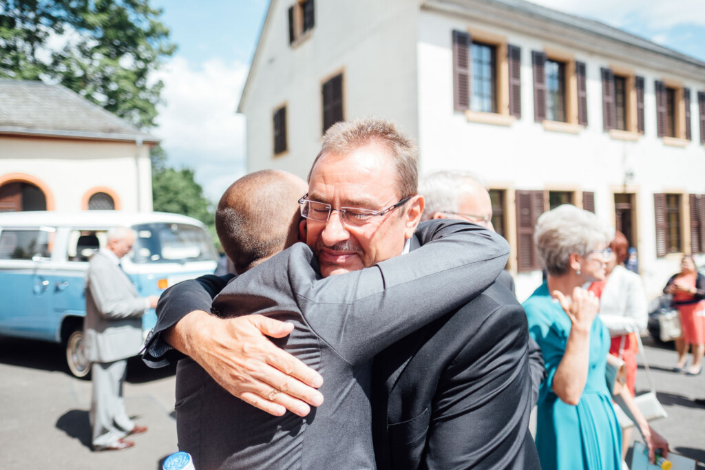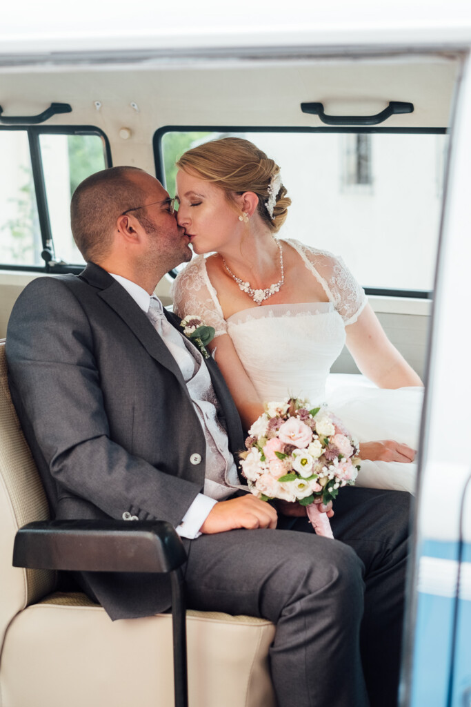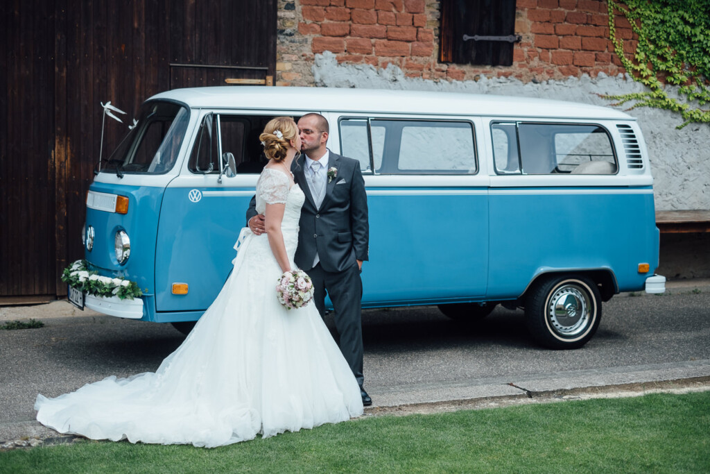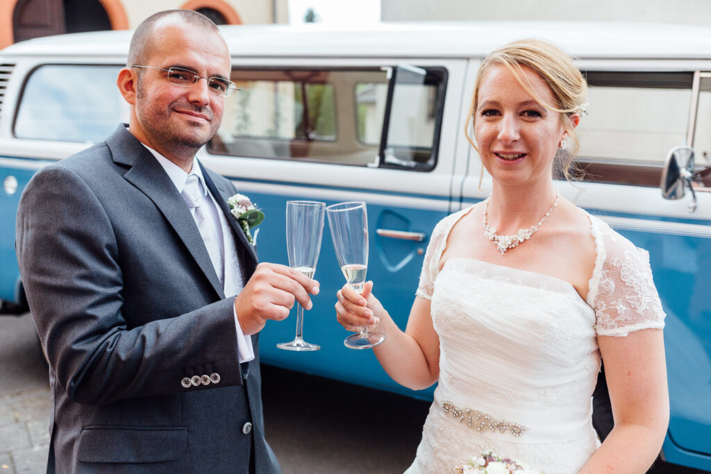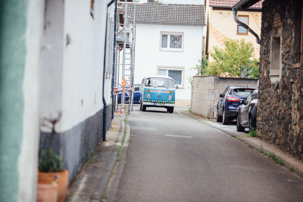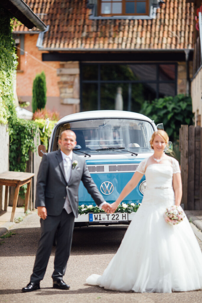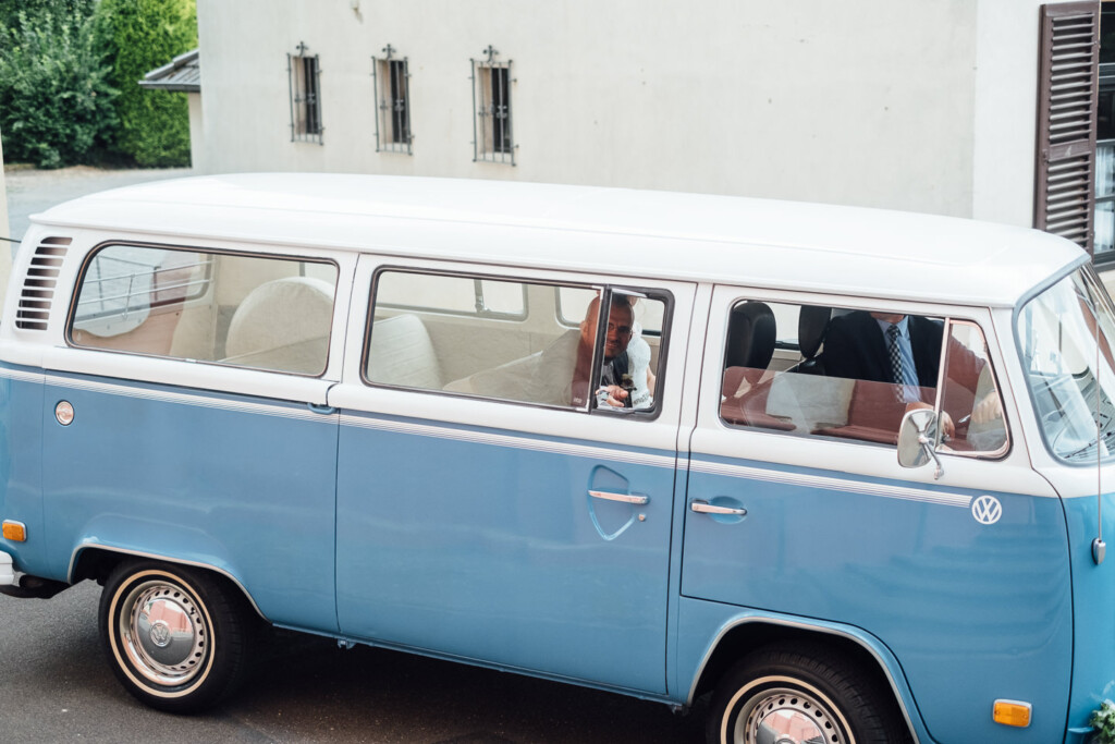 Von dort ging es in einem wunderschön restaurierten T1 Bully zur entspannte Feier im Weinhaus Engel in Grohlsheim.