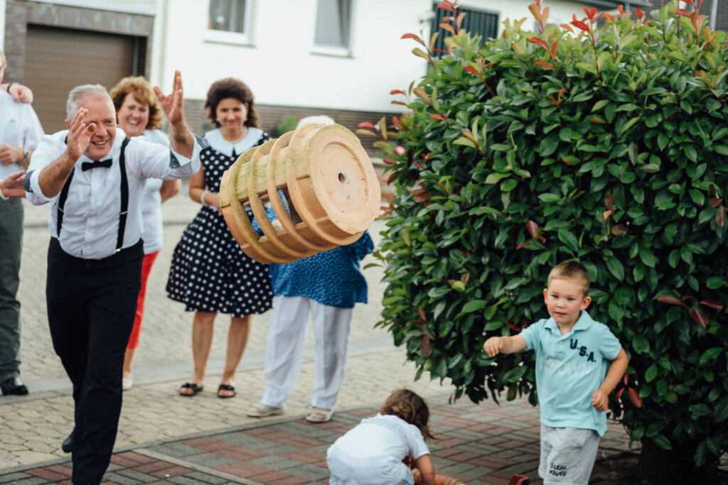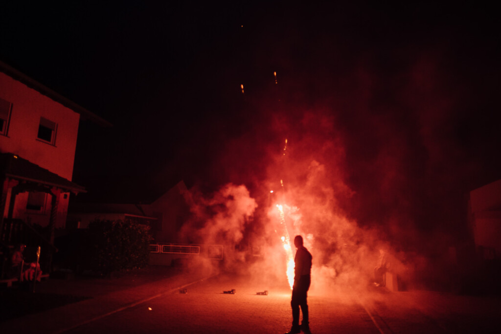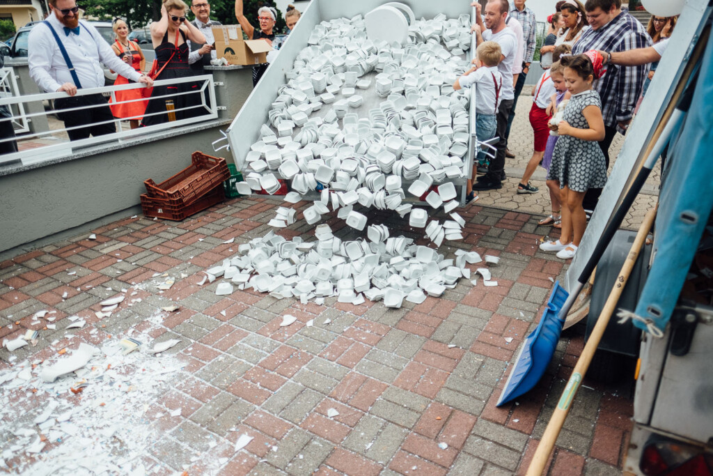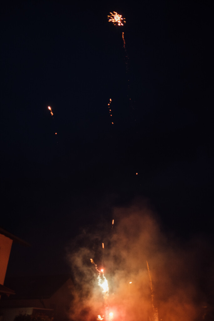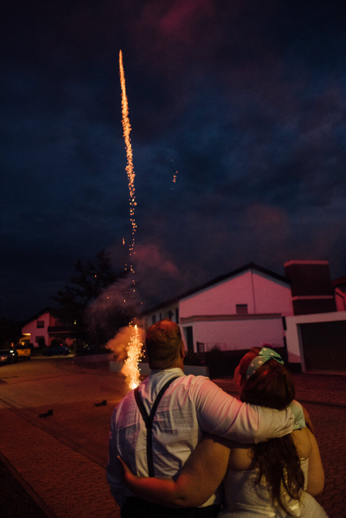 Danach wurde am Abend eine rauschende und wahrsten Sinne des Wortes krachende Polterhochzeit in Bad Kreuznach gefeiert. Auch diese durfte ich begleiten. Nachdem ganz viel Geschirr zu bruch gegagen ist, unzählige IKEA-Hotdogs gefuttert wurden und eine kleine Hochzeitstorte angeschnitte wurde, ist der Tag mit einem kleinen Feuerwerk zu Ende gegangen.